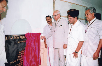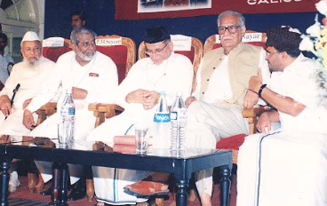 Sayed Muhammad Ali Shihab Thangal, Mr. PM Sayeed (Hon. Union Minister), Mr. Kuldip Nayar and Maulana Anzar Shah at the building inauguration 20th April 2003.