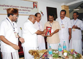 Mr. M.P. Veerendra Kumar, Member of Parliament released Bharatiya Gitam, the translation and commentary of Sare Jahan Se Achcha during the National Integration Conference inaugurated by Mr. P.K. Kunhalikkutty, former Minister of Kerala. First copy was recieved by Adv. P.S. Sreedharan Pillai. Mr.Benny Behanan and P.K. Gopi participated