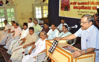 Mr. Sanu Master inaugurating the Seminar on Muhammad Abdu Rahman Sahib on 22nd November 2014. Mr. M.N. Karashery, Mr. N.P. Hafis Muhammad, Mr. Kamal Varadur (President Press Club, Calicut), Mr. Pradeep Hudino (Magician), Mr. M.N. Subhash Babu and Mr. U.K. Bhaskaran Nair attented.